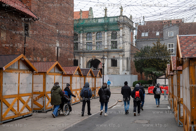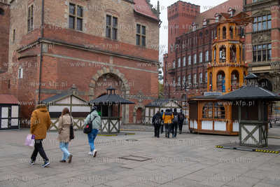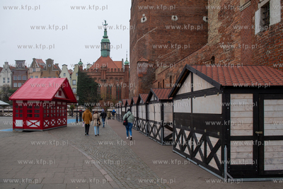 Na Targu węglowym w Gdańsku rozstawiane są pawilony Jarmarku Bożonarodzeniowego. 10.11.2024 fot. Paweł Marcinko / KFP