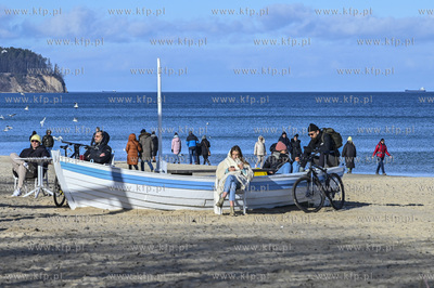 Mnóstwo osób odwiedziło w sobotę najatrakcyjniejsze miejsca w Sopocie. Było słonecznie i bez deszczu jak na połowę lutego co sprzyjało spacerom po kurorcie. 20.02.2022 fot. Jerzy Bartkowski / KFP