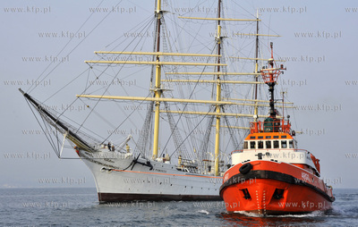 Najstarszy polski zaglowiec Dar Pomorza bedacy obecnie plywajacym muzeum, zostal przeholowany przez Holowniki WUZ-u z Gdyni do Gdanskiej Stoczni Remontowej S.A.