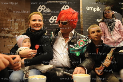 Gdansk, EMPIK w Galerii Baltyckiej. Spotkanie zespolu ICH TROJE z fanami. Muzycy rozdawali autografy na swojej najnowszej plycie pt "Osmy obcy pasazer". W pewnym momencie ktoś podal wokalistce male dziecko, do ktorego Michal Wisniewski sie nie przyznawal. Nz Ania Swiatczak, Michal Wisniewski i dziecko....