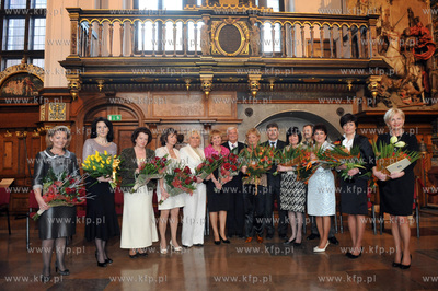 Final plebiscytu Kobieta Sukcesu w Dworze Artusa w Gdansku, zorganizowany przez Twoj Wieczor. Wspolne zdjecie laureatek z wiceprezydentem Sopotu Wojiechem Fulkiem, marszlakiem woj. Pomorskiego Janem Kozlowskim i wojewoda Pomorskim Romanem Zaborowskim. od lewej: Grazyna Berbec, Andzelika Cieslowska, Zofia...
