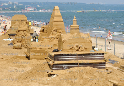 Gdanks. Duch Gdanskiej Architektury, tak nazywa sie plener rzezb z piasku na plazy w Jelitkowie. W jego trakcie grupa 31 rzezbiarzy z calego swiata wykona 16 monumentalnych zabytkow Gdanska. 02.07.2009 fot. Maciej Kosycarz / KFP