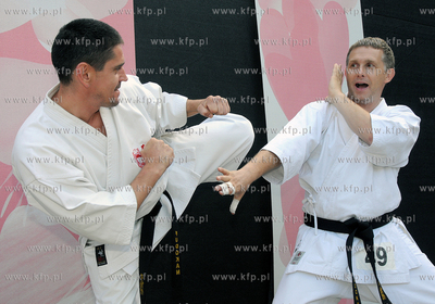 III Ogolnopolski Zlot Fanow M jak Milosc. Nz Robert Moskwa (na zdjeciu z prawej) - aktor (serialowy doktor Artur Rogowski), a takze karateka (brazowy medalista Mistrzostw Europy w Karate Fudokan) z Maciejem Grubskim wielokrotnym Mistrzem Swiata, Europy i Polski w karate tradycyjnym - trenerem kadry karate...