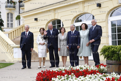 Sopot. Ogrody Grand Hotelu. Spotkanie Prezydentow Grupy Wyszehradzkiej. Nz od lewej Laszlo Solyom, prezydent Wegier, Ivan Gasparovic, prezydent Slowacji z malzonka Silvia, Lech Kaczynski, prezydent RP z zona Maria oraz Vaclav Klaus z zona Livia. 11.09.2009 fot. Krzysztof Mystkowski / KFP