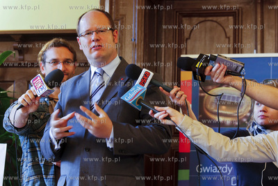 Sopot, Dom Zdrojowy - Swieto Miasta. Wreczenie dorocznej nagrody Prezydenta Miasta Sopotu w dziedzinie kultury, sztuki i nauki oraz Muzy dla Mlodego Tworcy. Uroczystosc uswietnil koncert Polskiej Orkiestry Kameralnej pod dyrekcja Wojciecha Rajskiego z udzialem Janusza Radka. Nz. Wojtek Staroniewicz...