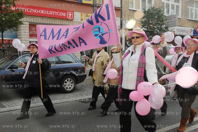Gdynia. Marsz Rozowej Wstazki z okazji Ogolnopolskego Dnia Walki z Rakiem Piersi przeszedl ulicami miasta. Wziely w nim udzial m. in. Amazonki z Gdanska, Slupska, Chojnic, Wejherowa, Rumi,