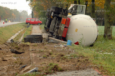 W miejscowosci Kazimierzowo z nieznanych przyczyn cysterna przewozaca gaz plynny, jadaca z Gdanska w kierunku Elblaga, wjechala do rowu. Kierowca pojazdu zostal przewieziony do szpitala.