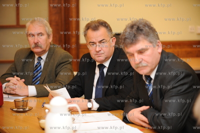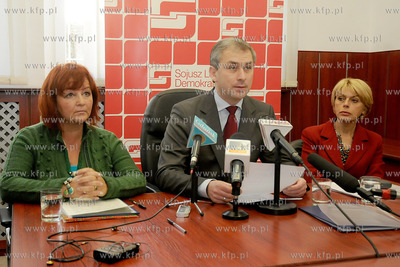 Gdynia. Konferencja prasowa SLD, w ktorej udzial wzial przewodniczacy partii, Grzegorz Napieralski. Celem bylo przedstawienie programu SLD, majacego na celu stworzenie ruchu spolecznego, ktory przejmie wladze w miescie. Nz. Grzegorz Napieralski, po prawej Izabela Jaruga Nowacka