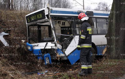 Ok. godz. 9 na wysokosci Kolibek Volkswagen T4 jadacy z kierunku Sopotu, gwałtownie zahamowal, w wyniku czego w tyl uderzyla go honda. Kierowca autobusu linii S, jadacego tym samym pasem, chcac ominac oba samochody, odbil na pobocze, uderzyl w drzewo i zatrzymal sie na nasypie kolejowym. W wyniku wypadku...