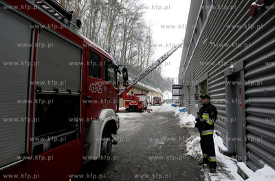 Gdynia, Pozar w CH Wzgorze. Najprawdopodobniej zapalilo sie ocieplenie rur wentylacyjnych w sklepie obuwniczym. Nz. straz pozarna na tylach centrum handlowego 12.01.2010 fot. Piotr Manasterski / KFP