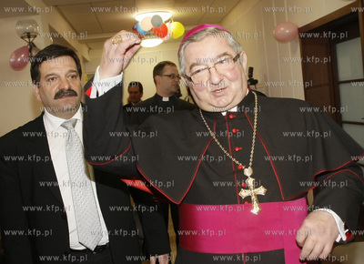 Gdansk. Metropolita gdanski abp Leszek Slawoj Glodz wzial udzial w spotkaniu oplatkowym Krajowej Komisji Solidarnosci,na ktorym odebral Tytul Czlowieka Roku Tygodnika Solidarnosc z rak redaktora naczelnego pisma Jerzego Klosinskiego. Nz z przewodniczacym NSZZ Solidarnosc Januszem Sniadkiem. 11.01.2010...