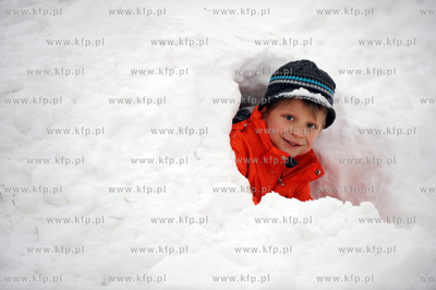Gdansk. Wreszcie zima jak trzeba. Dzieciaki robia tunele w zaspach 11.01.2010 fot. Wojtek Jakubowski /KFP