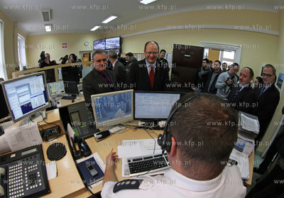 Gdansk, Nowe Ogrody, Komenda Miejska Policji. Otwarcie nowego miejskiego studia monitoringu. Dzieki niemu bedzie mozna obserwowac obraz ze wszytkich kamer monitoringu w miescie, dotychczas kamery polaczone byly wylacznie z komisariatami w poszczegolnych dzielnicach. Nz. Bogdan Oleszek, Przewodniczacy...