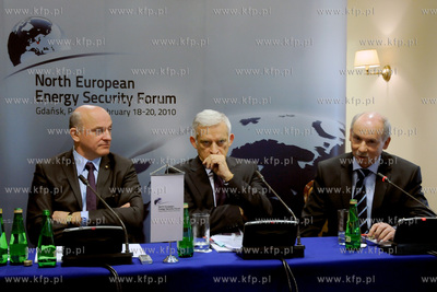 Hotel Radisson Blu w Gdansku. Forum Bezpieczenstwo Energetyczne Europy Polnocnej zorganizowane przez Grupe LOTOS i Windsor Energy Group pod honorowym patronatem Przewodniczacego Parlamentu Europejskiego Jerzego Buzka. Nz. Od lewej Pawel Olechnowicz prezes Grupa LOTOS S.A. Jerzy Buzek i Janusz Lewandowski...
