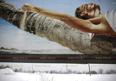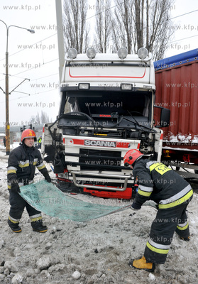 Gdansk. ul. Marynarki Polskiej na wysokosci Stoczni Polnocnej Z niewyjasnionych przyczyn samochod ciezarowy wypadl z drogi na torowisko tramwajowe i uderzyl w slup. 17.02.2010 fot. Maciej Kosycarz / KFP