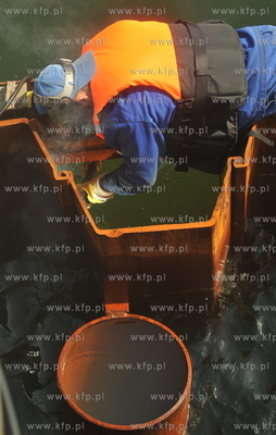 Krakow, Salwator. Umacnianie przeciekajacych walow przeciwpowodziowych na krakowskim salwatorze. W akcji biora udzial strazacy, zolnierze,wolontariusze, grupy z zakladow penitencjarnych.