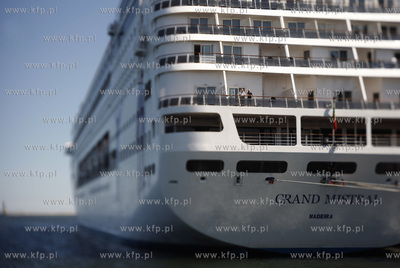 Gdynia. Wycieczkowiec Grand Mistral w gdyńskim porcie. Statek mierzy 216 m, a na pokładzie może przewieźć 1196 pasażerów i 470 członków załogi. Statek ten ma liczne obiekty sportowe, baseny, spa, a nawet dwupiętrowy teatr dla gości. Grand Mistral przypływa do Gdyni po raz pierwszy i w tym...
