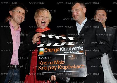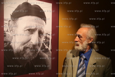 Dworek Sierakowskich w Sopocie. Wystawa malarstwa Piotra Wiatraka - sopockiego artysty zmarlego 17 lipca, 2009 r. Wystawa odbyla sie w terminie uzgodnionym wczesniej przez Piotra Wiatraka. Nz. Ryszard Hodowany, bliski przyjaciel artysty przy jego portrecie. 29.06.2010 fot. Jerzy Bartkowski / KFP