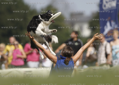 Sopot. Hipodrom. Zawody Frisbee - latajace psy za latajacym talerzem. Zawody towarzyszace miedzynarodowej wystawie psow rasowych. 15.08.2010 fot. Krzysztof Mystkowski / KFP
