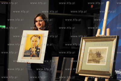 Opera Lesna w Sopocie - sala kameralna. Charytatywna aukcja obrazow na rzecz osob z autyzmem zorganizowana przez Fundacje Dom Rain Mana z Sopotu. Nz. prezentacja obrazow. 3.12.2010 fot. Jerzy Bartkowski / KFP