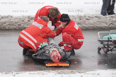 Do powaznego wypadku doszlo dzisiaj tuz po godzinie 11. na Drodze Krajowej nr 6. w Redzie kWejherowa. Mezczyzne przechodzacego przez jezdnie potracil jadacy w kierunku Gdyni Opel. Pieszy zostal ciezko ranny. 14.01.2011 Fot. Andrzej J. Gojke / KFP