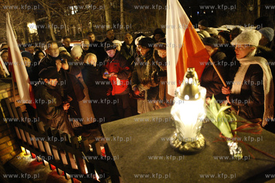 Sopot. Kolejna miesiecznica katastrofy lotniczej prezydenckiego samolotu pod Smolenskiem. Ludzie modla sie pod kamienica, w ktorej mieszkala para prezydencka Maria i Lech Kaczynscy. 10.01.2010 fot. Krzysztof Mystkowski / KFP