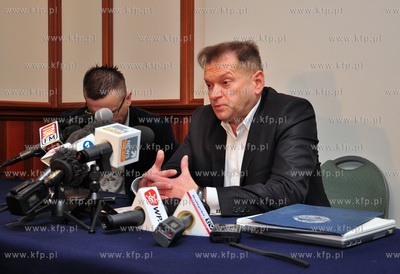 Konferencja prasowa Krzysztofa Rutkowskiego po przesluchaniu w sprawie Iwony Wieczorek przez Prokurature Okregowa w Gdansku Nz. po lewej Sebastian Bona - Kuchejda i Krzysztof Rutkowski