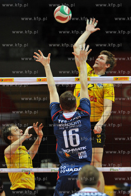 Hala Ergo Arena Gdansk/Sopot. Mecz finalowy play - off, Lotos Trefl Gdansk - Jadar Radom 3:0 (25:21, 25:15, 25:16). Nz. atakuje Waldemar Swirydowicz (12) i . 30.04.2011 fot. Jerzy Bartkowski / KFP