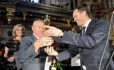 XVII Gala finału plebiscytu Bieznesmen Roku na Pomorzu w Dworze Artusa. Nz. Bogdan Górski właściciel firmy Przedsiębiorstwo Budowlane "Górski" otrzymuje statuetkę Biznesmana Roku z rąk marszałka Mieczysława Struka 28.05.2011 fot. Maciej Kosycarz / KFP