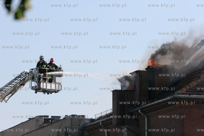 Pozar szpitala w Miastku. Splonal dach starej czesci lecznicy, w ktorej znajduje sie m.in. oddzial chirurgiczny. Wszystkich pacjentow udalo sie ewakuowac, ok. 40 osob. Akcja ratunkowa trwala kilka godzin. 31.05.2011 fot. Jacek Balk / KFP