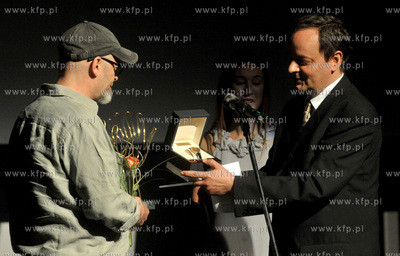 36 Festiwal Polskich Filmów Fabularnych w Gdyni. Redaktor naczelny i prezes Radia Gdańsk Dariusz Wasielewski wręcza reżyserowi Wojciechowi Smarzowskiemu nagrodę Złotego Klakiera i zloty zegarek za najdłużej oklaskiwany przez festiwalowa publiczność film "Róża". 10.06.2011 Fot. Maciej Kosycarz...