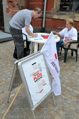 Dworzec Główny PKP w Gdańsku. NSZZ Solidarność zbiera podpisy pod obywatelski projekt ustawy o wzroście płacy minimalnej.