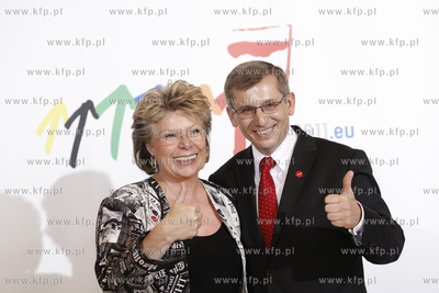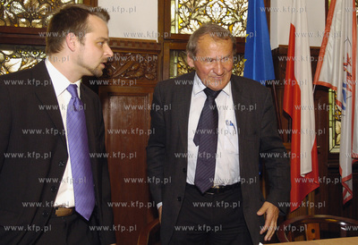 Gdansk. PGE Arena. Uroczyste wreczenie pozwolenia na uzytkowanie stadionu PGE Arena Gdansk. W uroczystosci udzial wzieli prezydent Gdanska Pawel Adamowicz, przewodniczacy rady miasta Bogdan Oleszek, prezes spolki Bieg 2012 Ryszard Trykosko, prezes Hydrobudowy Jerzy Ciechanowski oraz prezes firmy Trias...