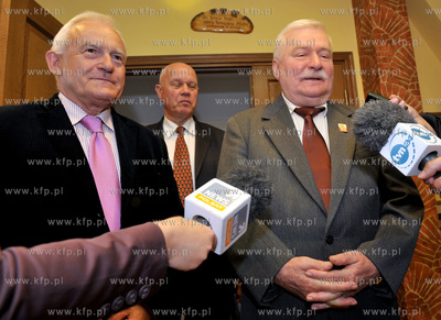 Były premier Leszek Miller złożył wizytę Lechowi Wałęsie w jego biurze w Gdańsku. Miller powiedział dziennikarzom, że wizyta ma związek z kampanią wyborczą. W wyborach parlamentarnych Leszek Miller startuje z list SLD. Ma być jedynką w okręgu gdyńsko- słupskim. 19.08.2011 fot. Maciej...