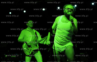 8 Flader Festiwal na plazy w Gdansku - Brzeznie. Koncert zespolu Dr MISIO. Nz Arek Jakubik - wokalista i lider zespolu.Tuz za nim Mario Matysek - gitara basowa. 19.08.2011 fot. Bartek Babczynski / KFP