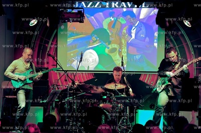 Klub Versalka w Sopocie. Koncert z cyklu Jazz Travel: Marek Napiórkowski Trio - KonKubiNap, w skladzie Marek Napiorkowski (gitara), Robert Kubiszyn (gitara basowa), Cezary Konrad (perkusja). 10.04.2012 fot. Jerzy Bartkowski / KFP