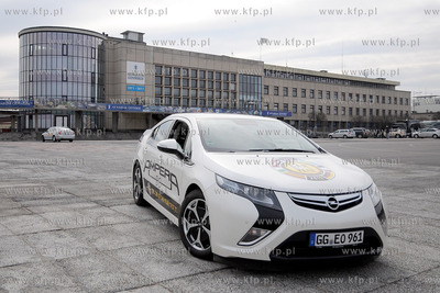 Gdynia. Skwer Kościuszki. Pierwsza w Polsce prezentacja samochodu nowej generacji - Opla Ampery z napędem elektrycznym. Opel Ampera może przejechać 40-80 km wykorzystując wyłącznie energię elektryczną z akumulatorów. Dzięki pomocy spalinowego generatora ten napędzany silnikiem elektrycznym...