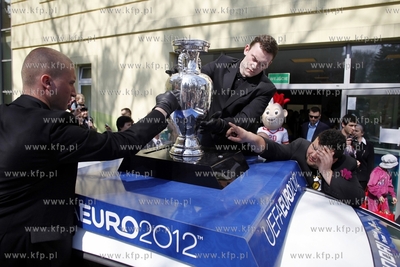 Wizyta słynnego pucharu Henri Delaunaya w Gdańsku. Piłkarskie trofeum przybyło w ramach Trophy Tour, podczas którego puchar odwiedza 14 miast w obu krajach, współgospodarzach UEFA Euro 2012. Nz. trofeum w Klinice Pediatrii, Hematologii i Onkologii Dziecięcej.