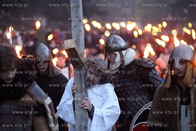Na wspólne przeżywanie Misterium Męki Pańskiej zaprosili sopocian w sobotni wieczór podopieczni Młodzieżowej Placówki Wychowawczej "Caritas". Scenerią sztuki pasyjnej połączonej z teatrem ognia była sopocka Łysa Góra. 12.04.2014 / fot. Krzysztof Mystkowski / KFP