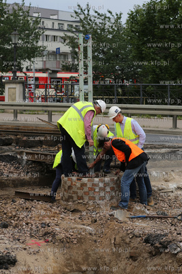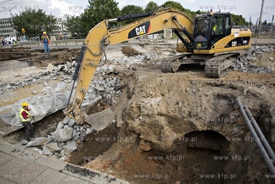 Hucisko. Archeolodzy badają odkryte podczas prac budowlanych znalezisko. Najprawdopodobniej są to pozostałości po wiadukcie, a nie piwnice kamienic, jak wcześniej przypuszczano. 14.07.2015 / fot. Krzysztof Mystkowski / KFP