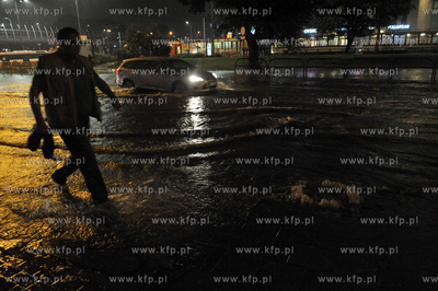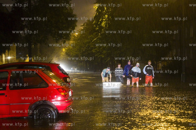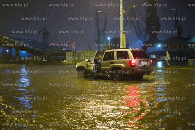 Na skutek trwającej od kilku godzin ulewy zalane zostały ulice Twarda i Jana z Kolna w Gdańsku. Wstrzymano ruch tramwajów na ul. Jana z Kolna. 14.07.2016 / fot. Krzysztof Mystkowski / KFP