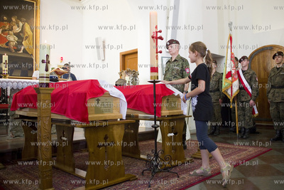 Gdańsk. Uroczystości pogrzebowe Danuty Siedzikówny "Inki" i Feliksa Selmanowicza "Zagończyka". Nz. wyprowadzenie trumien z Kaplicy Królewskiej. 28.08.2016 fot. Krzysztof Mystkowski / KFP