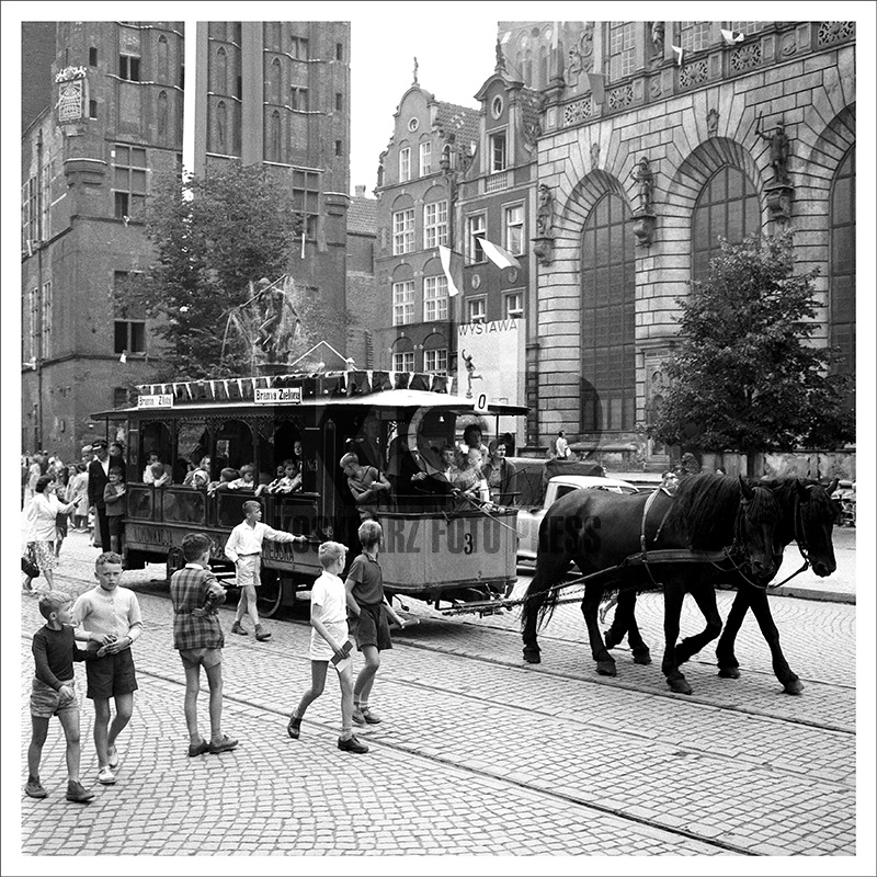 Konny tramwaj na Długim Targu w Gdańsku. Lata 60. Fot. Zbigniew Kosycarz