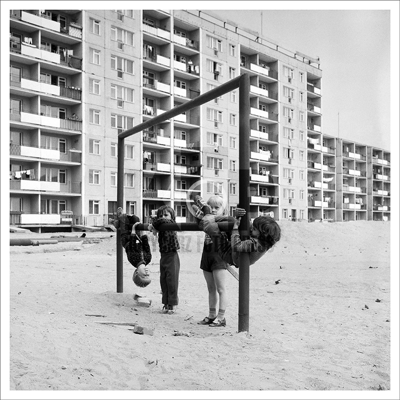 Dzieci na trzepaku na ul. Pilotów na osiedlu Gdańsk-Zaspa. 12 czerwca 1976 roku. Fot. Zbigniew Kosycarz