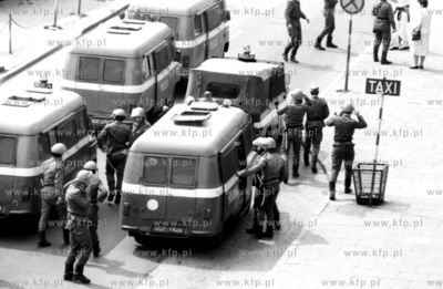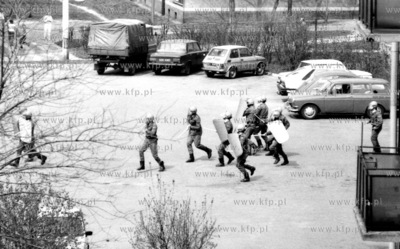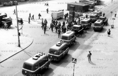 Oddzialy milicji ZOMO w Gdasnku na ul.Podwale Staromiejskie...