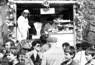 Sprzedaz atrakcyjnych artykulow spozywczych z samochodu podczas pochodu 1 - majowego. (1maj89_z.kosycarz_p1) 01.05.1989 Fot. Zbigniew Kosycarz / KFP
