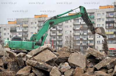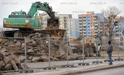 Gdansk. Zaspa. Wyburzanie dawnego pasa startowego wzdluz al. Jana Pawla II. Jest to pierwszy etap prac zwiazanych z budowa apartamentowca Awiator przez firme Allcon. 07.02.2010 fot. Maciej Kosycarz / KFP