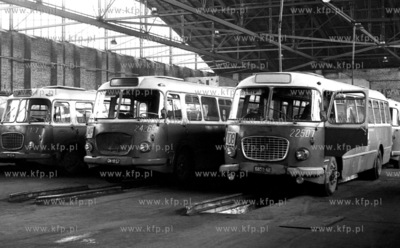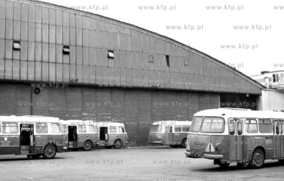 Zajezdnia autobusowa w Gdansku Zaspie mieszczaca sie w dawnym hangarze bylego lotniska we Wrzeszczu. Nz. autobusy marki Jelcz popularne ogorki. 27.04.1978 7kwiecien78_z.kosycarz_p64 Fot. Zbigniew Kosycarz / KFP ZAKAZ PUBLIKACJI ZDJECIA W INTERNECIE