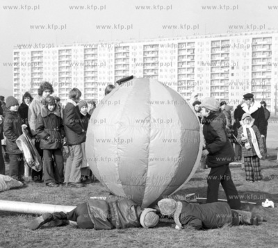 Gdansk Zaspa. Zawody modeli balonow na ogrzane powietrze na terenie dawnego lotniska we Wrzeszczu. 6luty76_z.kosycarz_p58 28.02.1976 Fot. Zbigniew Kosycarz / KFP ZAKAZ PUBLIKACJI ZDJECIA W INTERNECIE