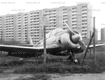 Samolot otoczony ogrodzeniem i blokami mieszkalnymi to pamiatka po lotnisku Gdansk Wrzeszcz na terenie Zaspy. Obecnie powstaje tam budynek mieszkalny Startowa 19, budowany przez firme Gorski. 14.10.1977 4 pazdziernik 77 - Z. Kosycarz p. 32 Fot. Zbigniew Kosycarz / KFP.PL ZAKAZ PUBLIKACJI ZDJECIA W INTERNECIE
